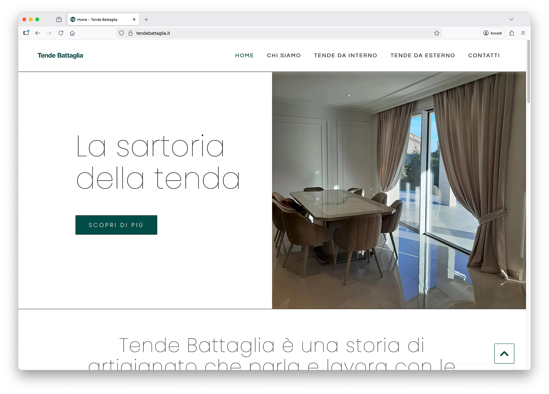 Il progetto ha portato alla costruzione di una presenza digitale riconoscibile e credibile, capace di raccontare Tende Battaglia in modo fedele e coerente.